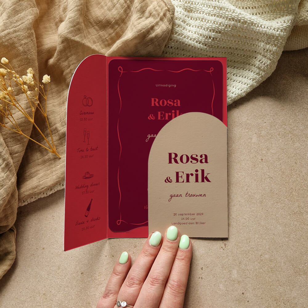 LET OP: Bestel de insteekkaart in het formaat 11 x 17 cm zodat deze mooi in het mapje past. Zowel het insteekmapje als de bijpassende insteekkaart kunnen worden gedrukt op linnen papier of op coated karton, zodat de kleuren zoveel mogelijk met elkaar overeenkomen. Folie is alleen mogelijk op de voorzijde van het insteekmapje.