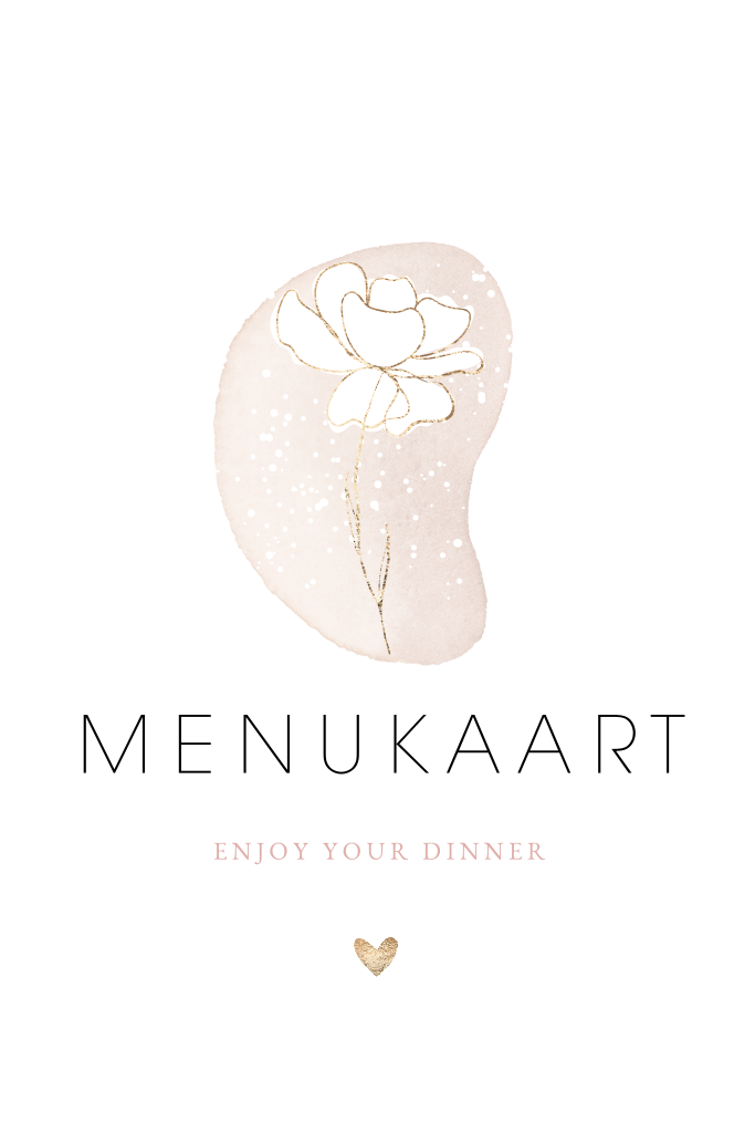 Basic maar stijlvolle menukaart met een sierlijke goudkleurige bloem. Deze menukaart is onderdeel van onze trouwhuisstijl Classic Roses.