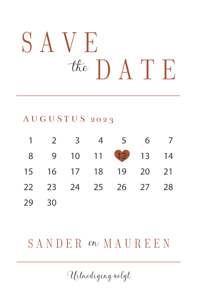 Save the Date kaart Clean Koper met kalender