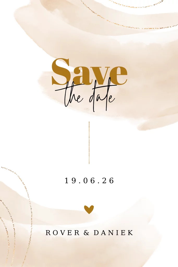Save the Date kaart met ronde hoeken en aquarelvegen