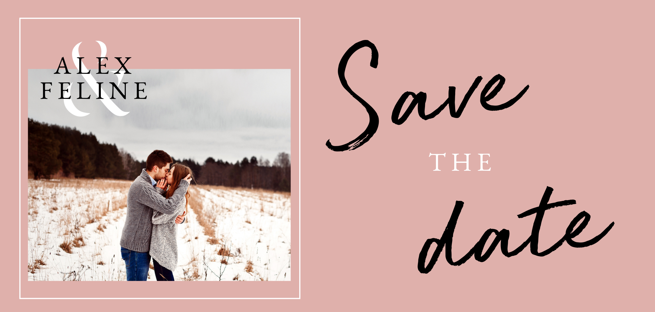De tekst Save the Date staat in een sierlijk lettertype. Voeg je eigen persoonlijke foto toe. De kleuren en teksten zijn gemakkelijk aan te passen in de editor.