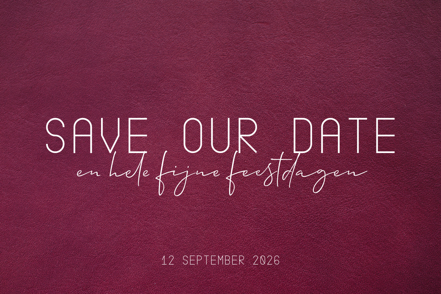 Trendy Save the Date kerstkaart met goudfolie en lederlook achtergrond