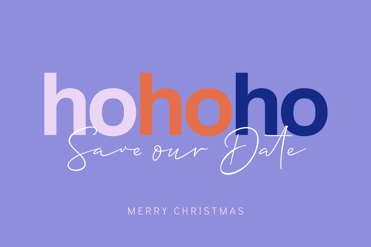 Ho Ho Ho wat een trendy kerstkaart om al je familie en vrienden te laten weten dat jullie in het nieuwe jaar gaan trouwen. Op deze hippe save the date kerstkaart een paarse achtergrond met gekleurde tekst in verschillende lettertypes. Voeg je kerstgroet toe en kondig op deze originele manier jullie huwelijk in het nieuwe jaar aan.
