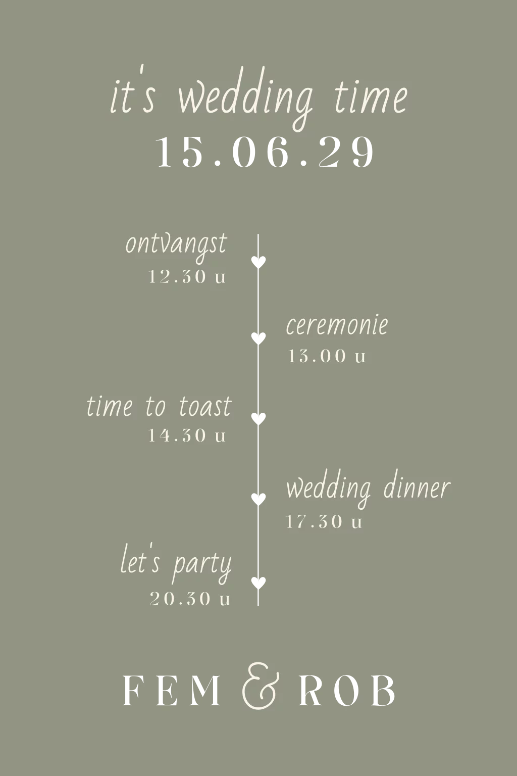 Elegant trouwkaartje met groene en gouden accenten in formaat 11 x 17 cm. Personaliseer je huwelijksuitnodiging eenvoudig in onze online editor. Bij deze insteekkaart past dit stijlvolle insteekmapje.