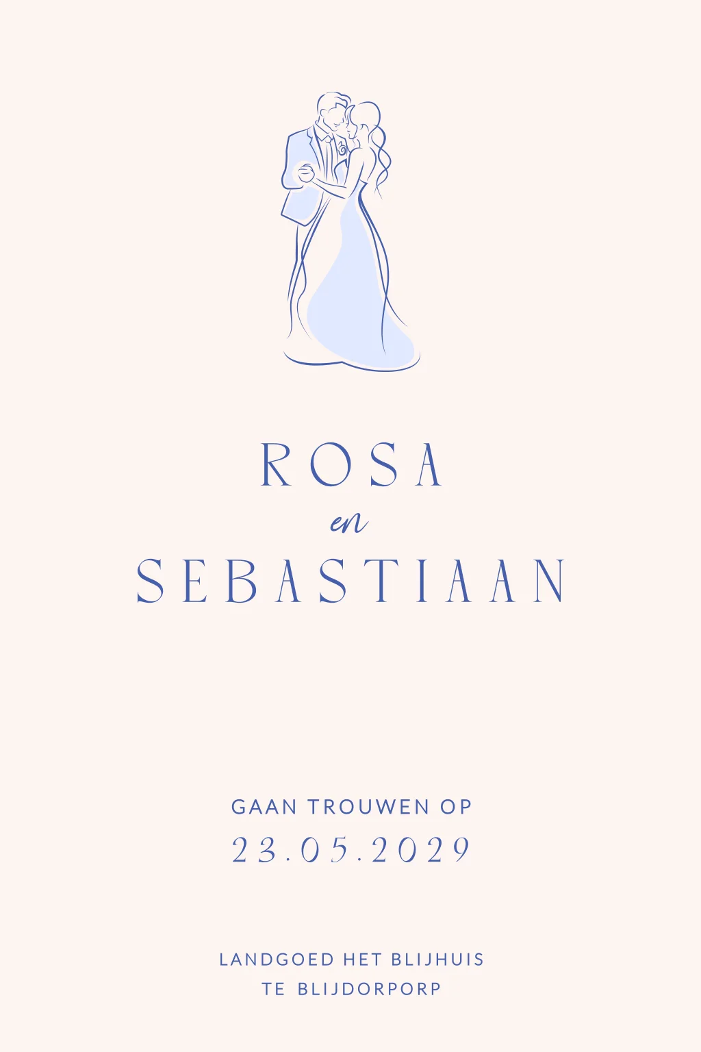 Insteekkaart voor een insteekmapje. Op deze trouwkaart zie je een lijntekening van een dansend bruidspaar. De kaart heeft formaat 11 x 17 cm. Bij deze insteekkaart past dit stijlvolle insteekmapje.| Totaalprijs: 0 |