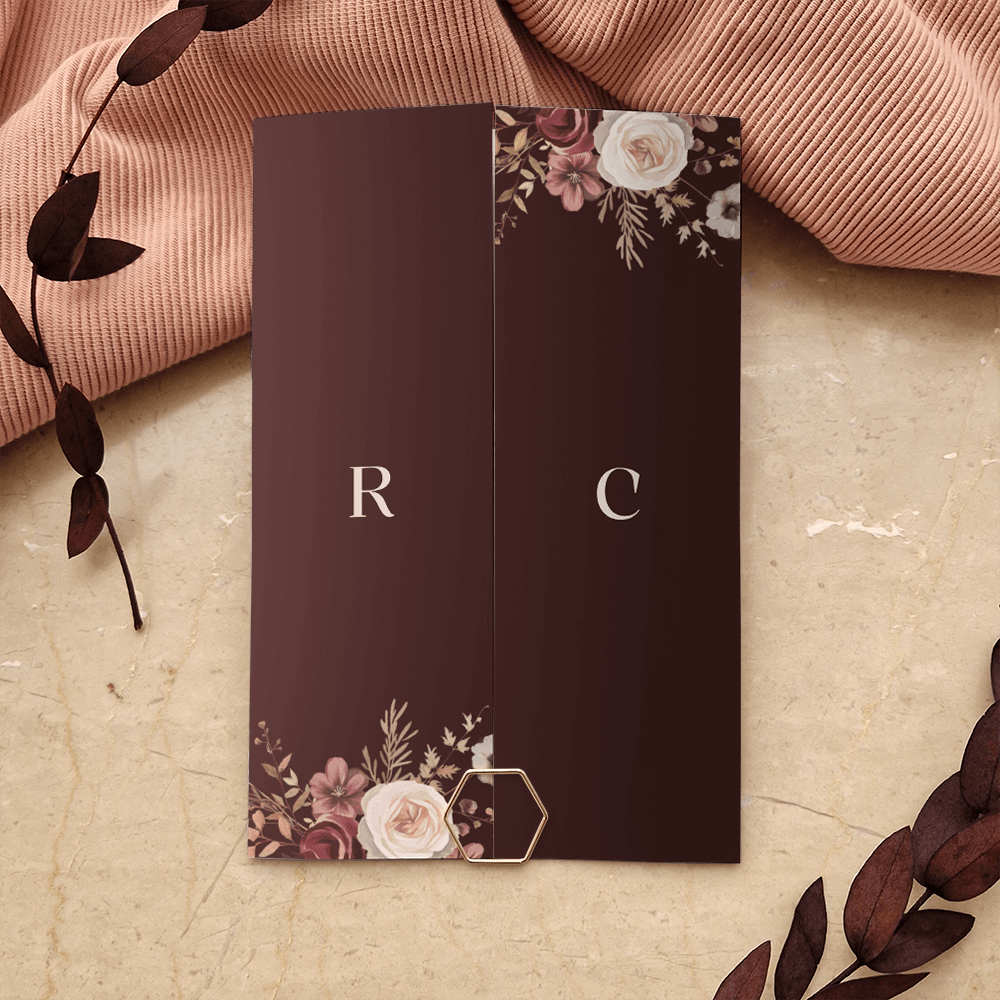 Op zoek naar een originele trouwkaart? Dan is deze trouwkaart met luikvouw en bloemen zeker iets voor jullie! Deze trouwkaart valt zeker op door de theatervouw. Voeg op de voorkant van deze huwelijksuitnodiging jullie eigen initialen toe. Wij raden af om doorlopende elementen of teksten over de deurtjes te plaatsen. Vanwege de vouwlijn en afwerking zullen deze elementen niet perfect op elkaar aansluiten.