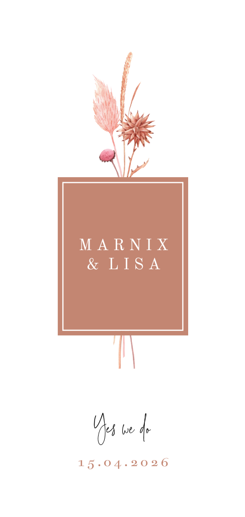 Yes we do! Stijlvolle trouwkaart met een mooie aquarel bloem in rozetinten. Verder is de kaart rustig en overwegend wit. Maak van deze kaart je eigen persoonlijke trouwkaart. Teksten en kleuren pas je gemakkelijk aan in de editor.