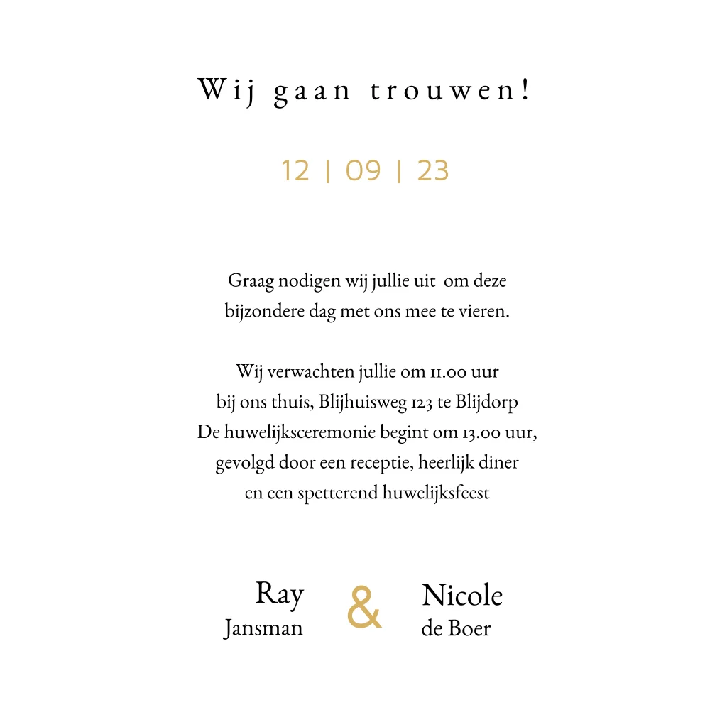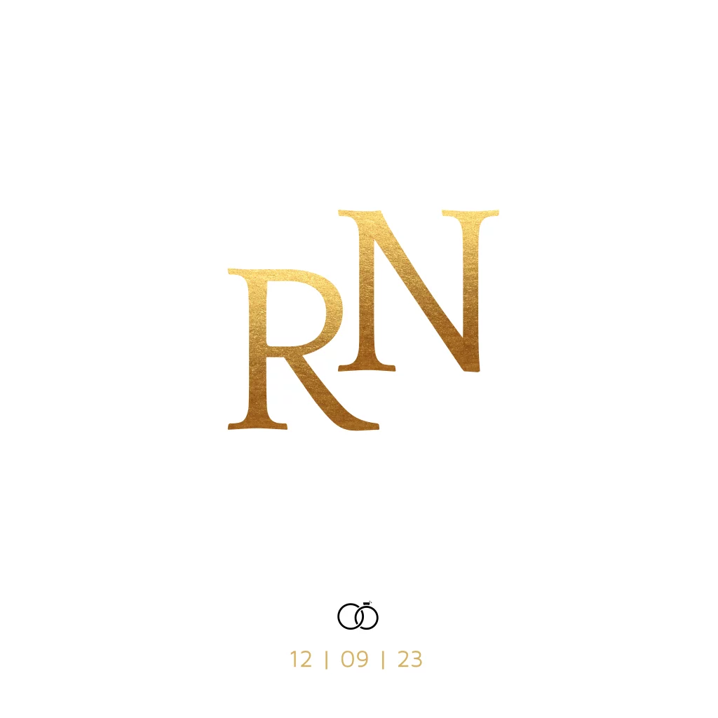 Basic trouwkaart met initialen in goudlook