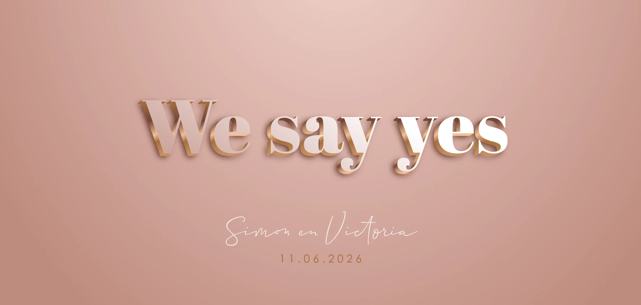 Hippe trouwkaart met luxe tekst 'we say yes'. De letters hebben een mooie rosé kleurige glans en 3D effect waardoor deze er extra uitspringen. Laat iedereen hiermee weten dat jullie ja zeggen tegen elkaar en in het huwelijksbootje stappen.