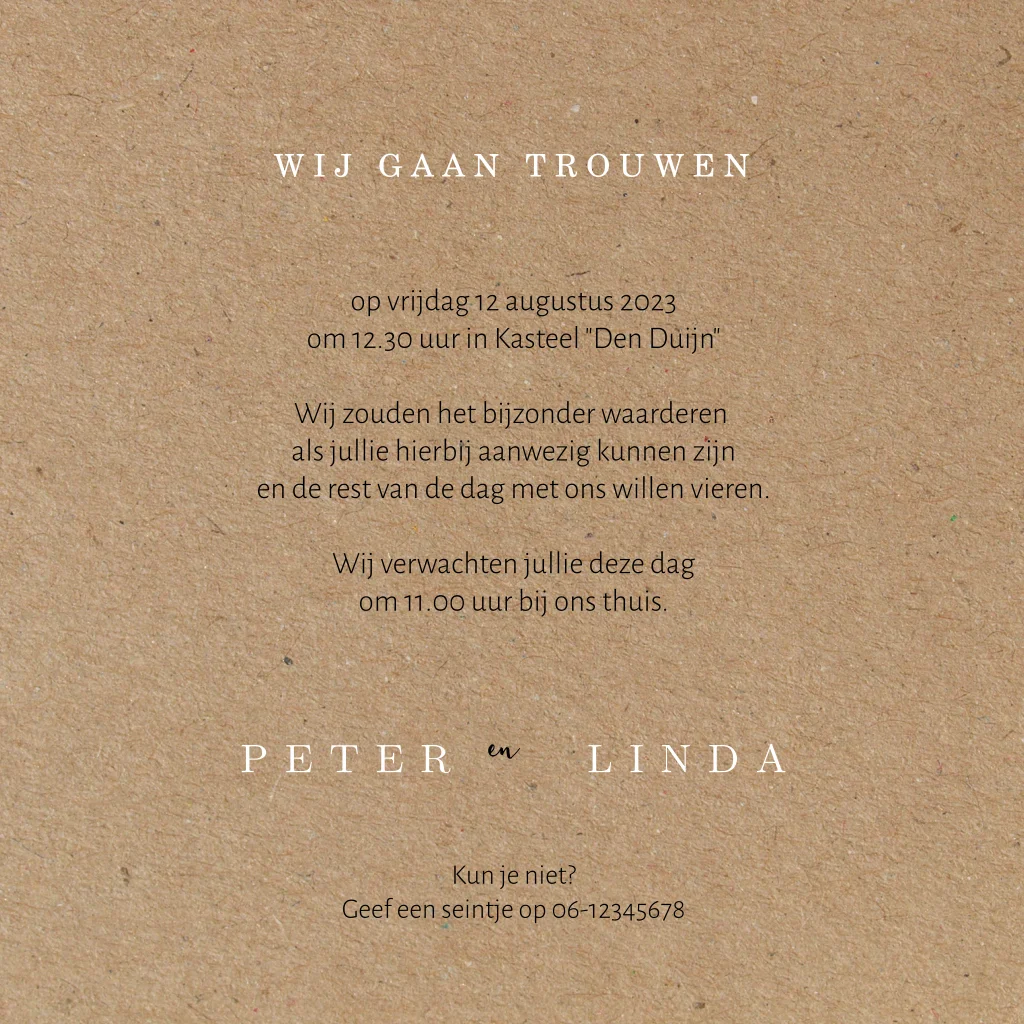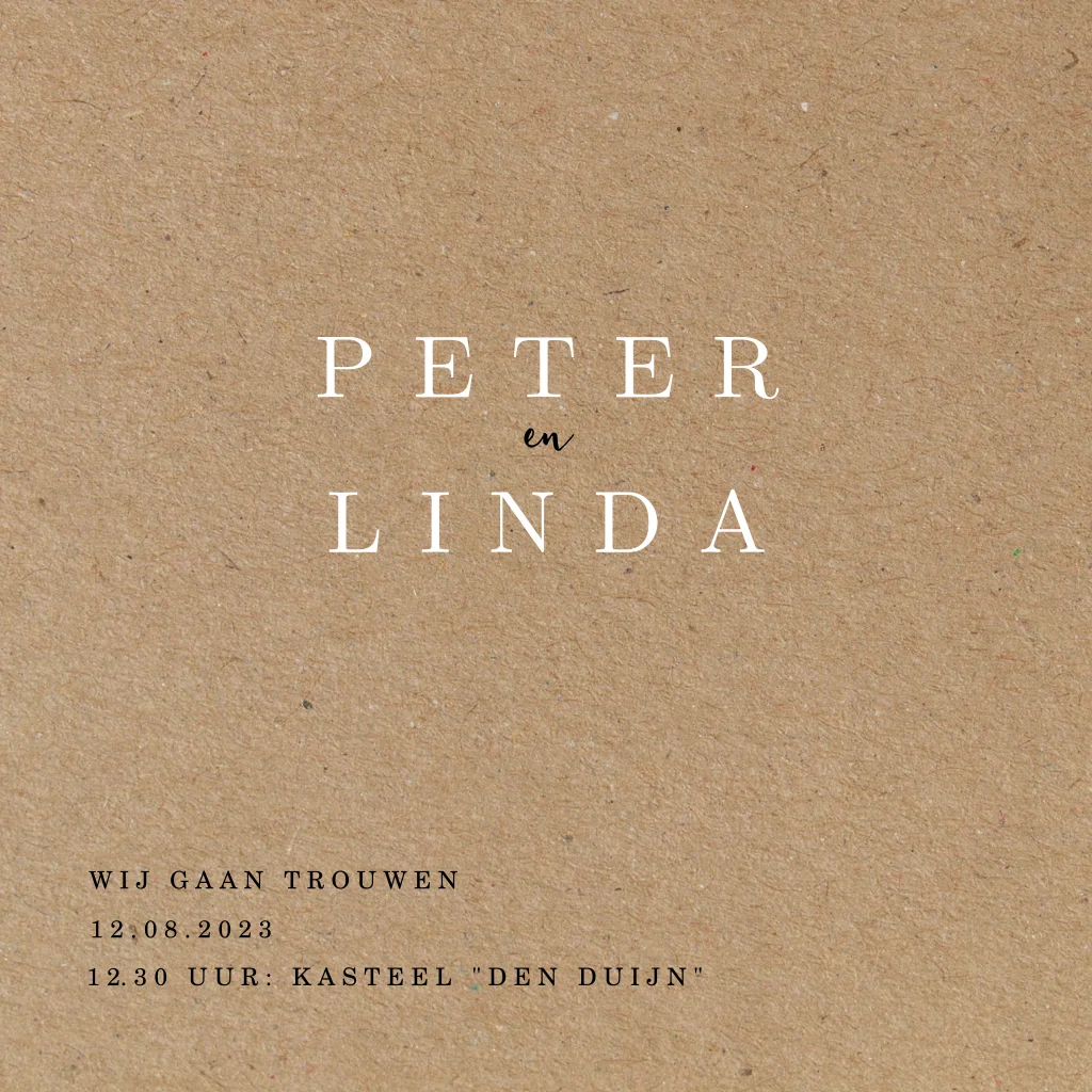 Strakke basic trouwkaart op karton achtergrond