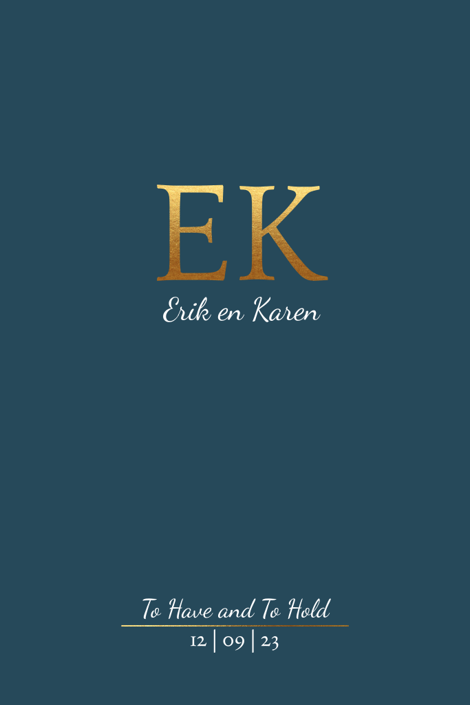 Stijlvolle basic trouwkaart met de initialen van het bruidspaar in goudlook letters op de voorkant. De letters van de initialen zijn afbeeldingen uit onze online beeldbank en dus eenvoudig aan te passen. De bordeaux rode achtergrond met een vleug geeft de kaart een extra chique geheel. De tekst forever op deze trouwkaart is natuurlijk ook aan te passen.