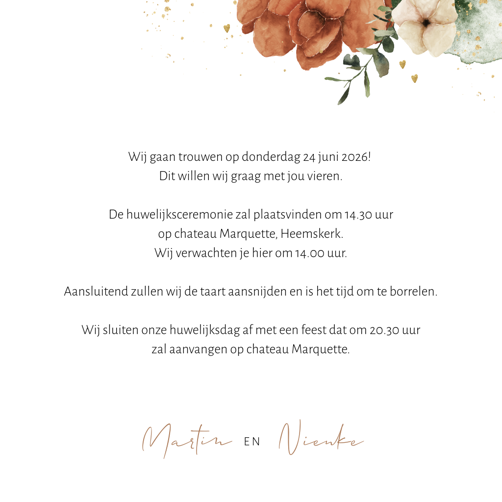 Rustige trouwkaart met stijlvolle aquarel bloemen