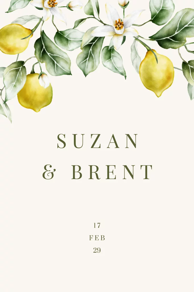Citrus trouwkaart met citroenen in aquarel