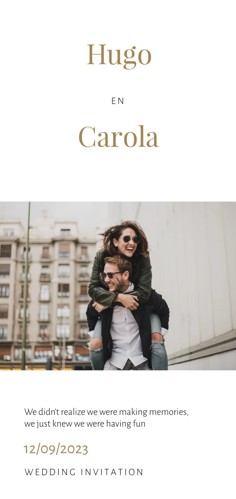 Hippe trouwkaart in trendy formaat. Plaats je eigen persoonlijke foto. Deze huwelijksuitnodiging is clean, rustig en eenvoudig aan te passen naar jullie eigen wensen.