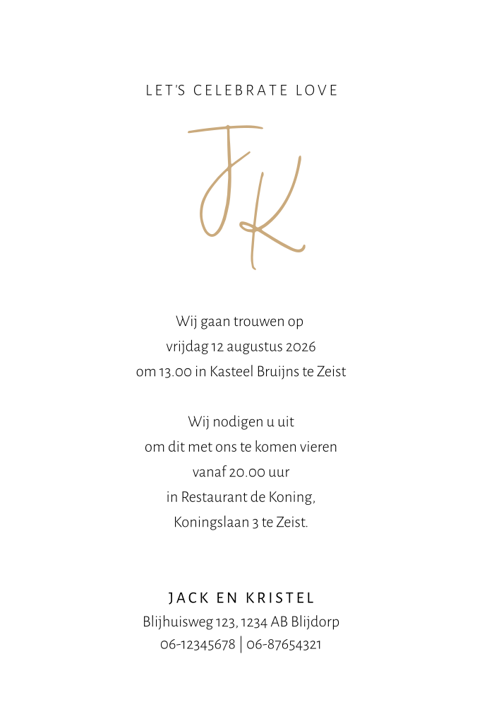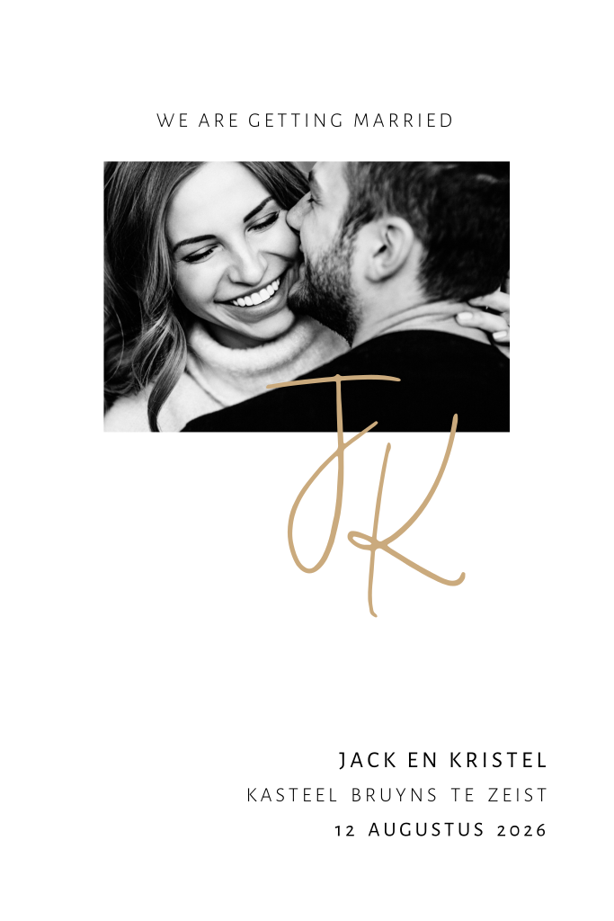 Kondig jullie huwelijk aan met deze mooie rustige trouwkaart met initialen. De foto op deze uitnodiging kun je gemakkelijk vervangen door je eigen favoriete foto.