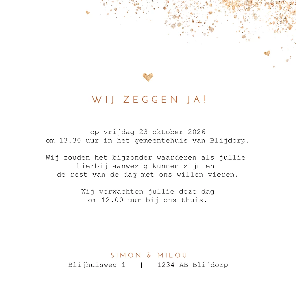 Trouwkaart Roest met goudkleurige spetters en hartje
