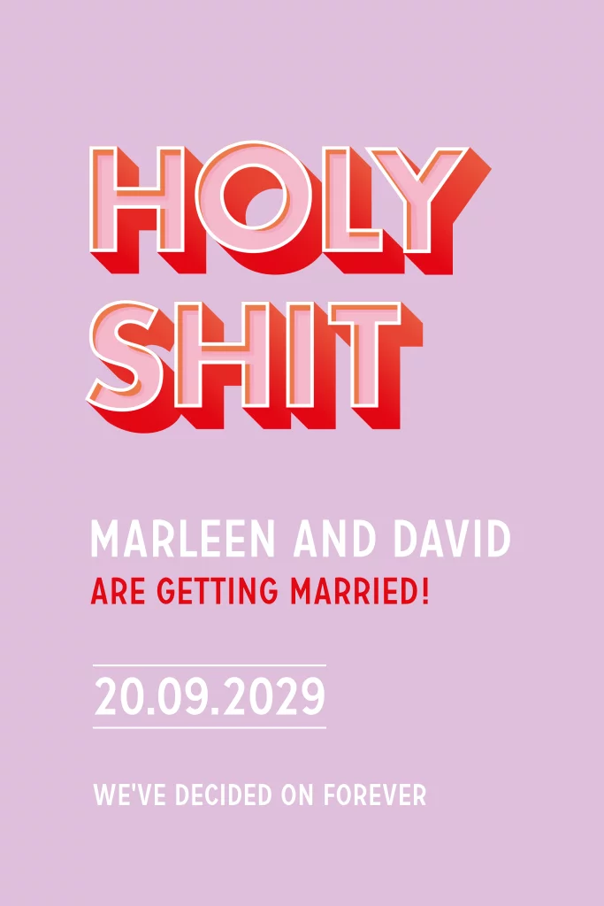 Kleurrijke typografische trouwkaart holy shit