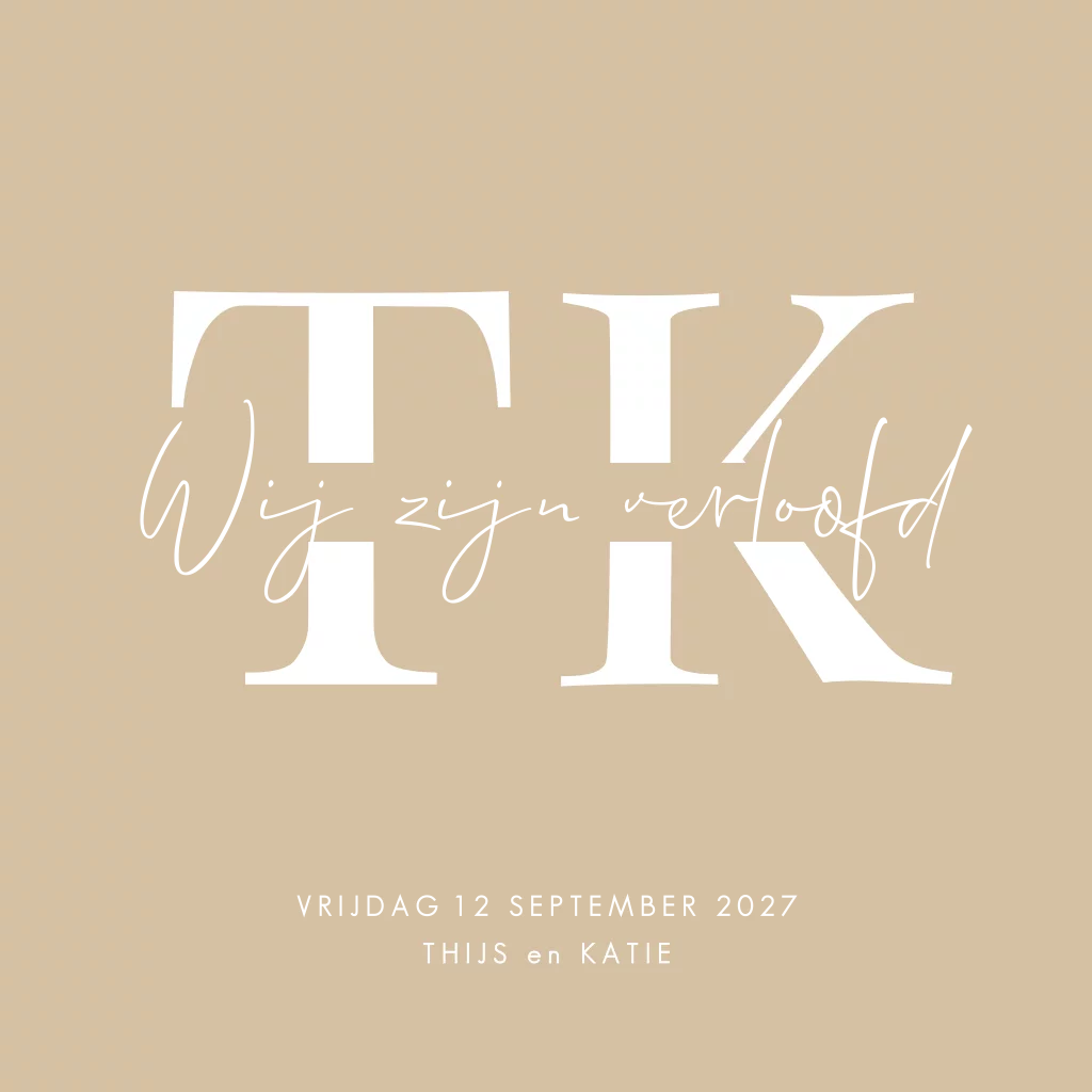 Als je op zoek bent naar een stijlvolle en elegante verlovingskaart, is deze kaart met goudfolie perfect voor jou! De kaart is eenvoudig en minimalistisch, maar toch stijlvol en chique. De initialen van het bruidspaar met de goudfolie tekst in een sierlijk lettertype springen er helemaal uit. De achtergrond is een mooie warme zandkleur, waardoor de kaart rustig en sereen oogt. Deze kaart is perfect voor een stijlvolle en elegante verloving!