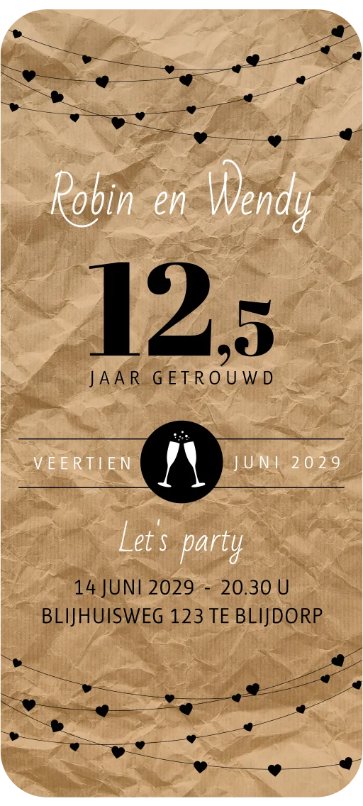 Bewegende digitale uitnodiging met kraft papier voor een 12,5 jarig huwelijk