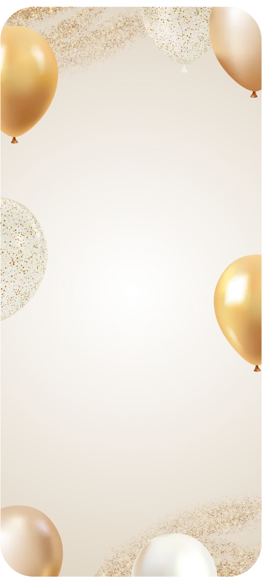 Digitale uitnodiging voor een verjaardag of andere feestelijke gelegenheid zoals een huwelijksjubileum. Deze uitnodiging is geanimeerd en feestelijk met poppende confetti en zwevende ballonnen.