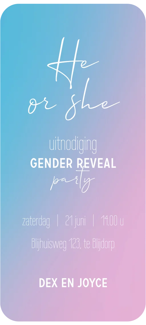 Gender reveal digitale uitnodiging he or she