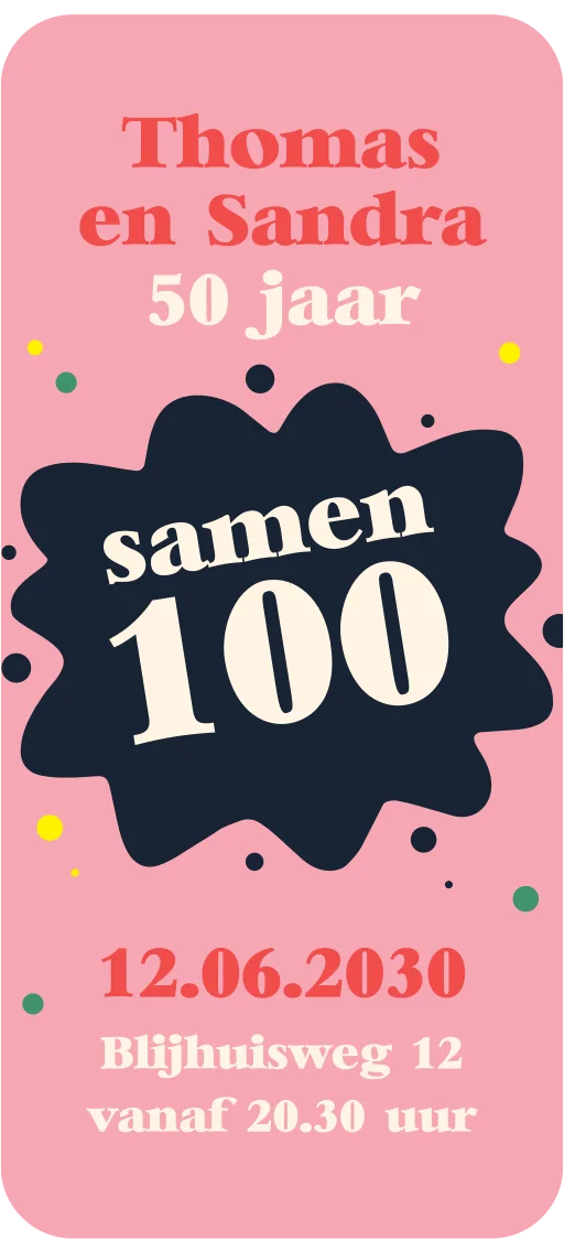 Digitale uitnodiging verjaardag samen 100 met confetti