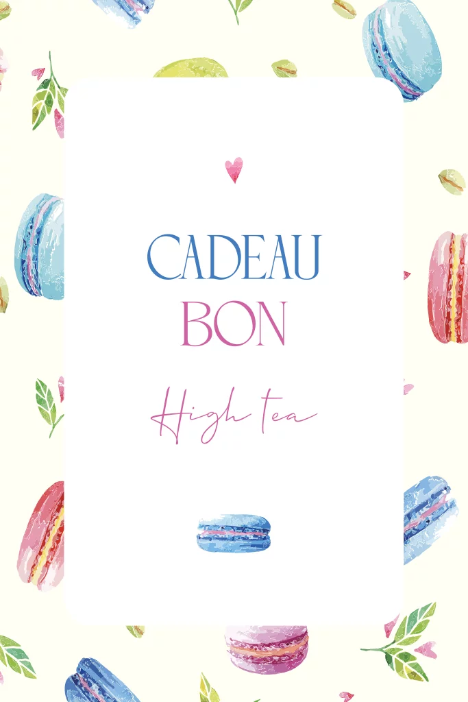 Op zoek naar een high tea cadeaubon? Kies dan voor deze prachtige high tea uitnodiging met ronde hoeken! Op deze cadeaubon zie je heerlijke macarons, blaadjes en hartjes. Ook is het randje van het kader om het woord cadeaubon in goudfolie vormgegeven. Dit geeft de cadeaubon een extra luxe uitstraling!