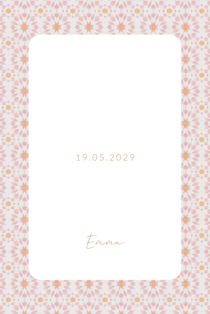Op zoek naar een unieke uitnodiging voor een lentefeest met een vleugje luxe? Ontdek deze uitnodiging met een mediterraans patroon en boho uitstraling. Dit kaartje is voorzien van echt goudfolie met afgeronde hoeken, wat zorgt voor een elegante en stijlvolle uitstraling.