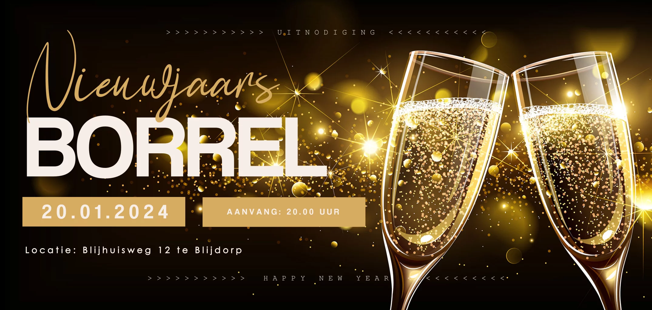 Nieuwjaarsborrel uitnodiging met sparkles en champagne
