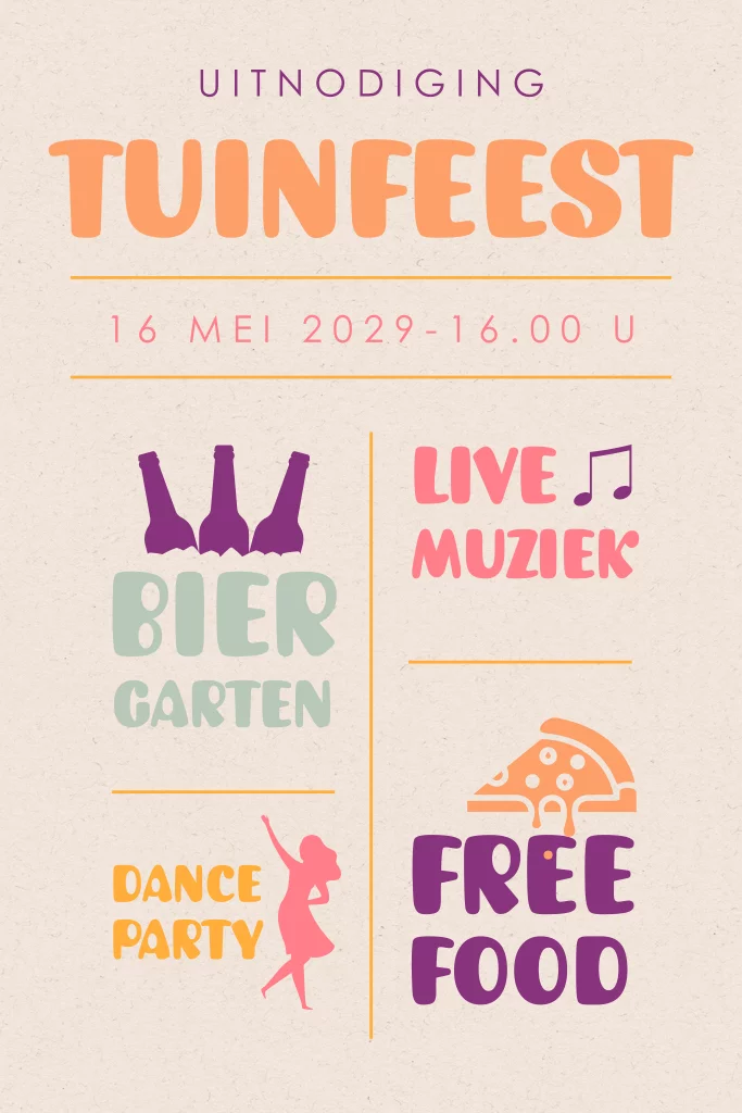 Een hippe uitnodiging voor een tuinfeest. Met dit feestelijke kaartje laat je duidelijk aan je vrienden en familie zien dat je wat te vieren hebt!