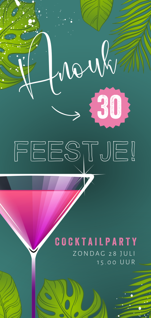 Hippe uitnodiging voor een cocktailparty. Deze verjaardagskaart is geschikt voor elke leeftijd. Dus wordt je 20, 30, 40 of 50 jaar; deze feestelijke uitnodiging pas je eenvoudig aan naar jouw wensen