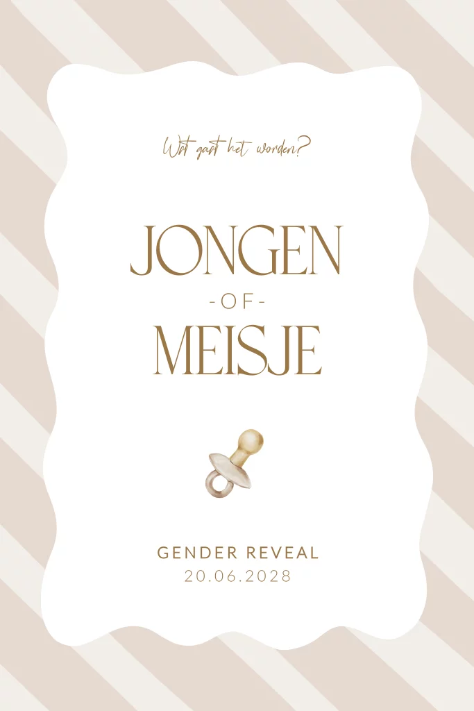 Gender reveal uitnodiging met strepen, kader en fopspeen
