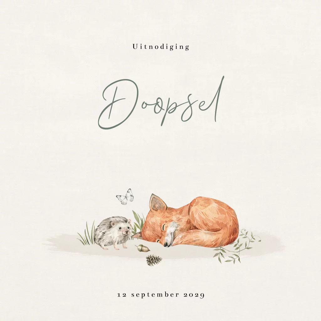 Doopsel uitnodiging bosdieren vosje