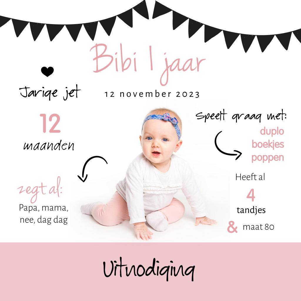 Uitnodiging 1 jaar met foto en mijlpalen
