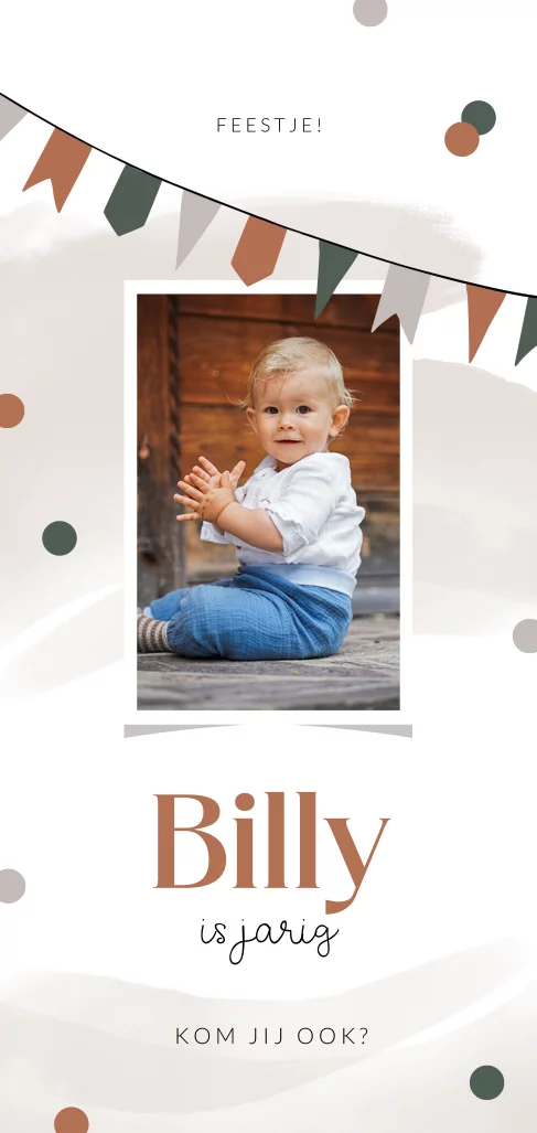 Uitnodiging kinderfeestje jongen aquarel slingers foto confetti