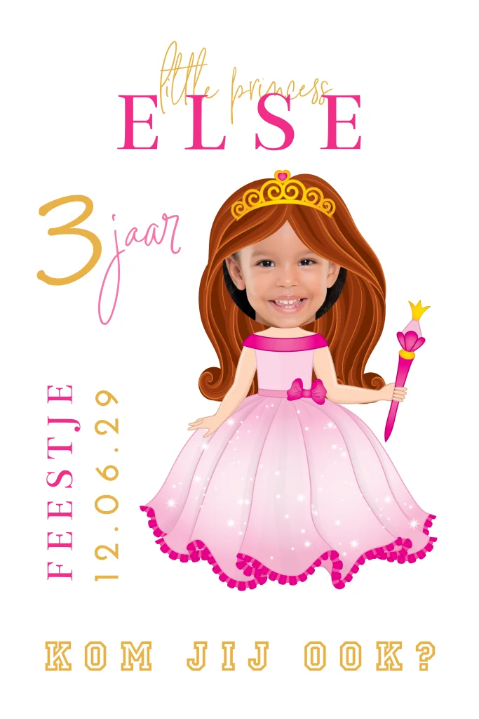 Prinsessen uitnodiging verjaardag met eigen foto