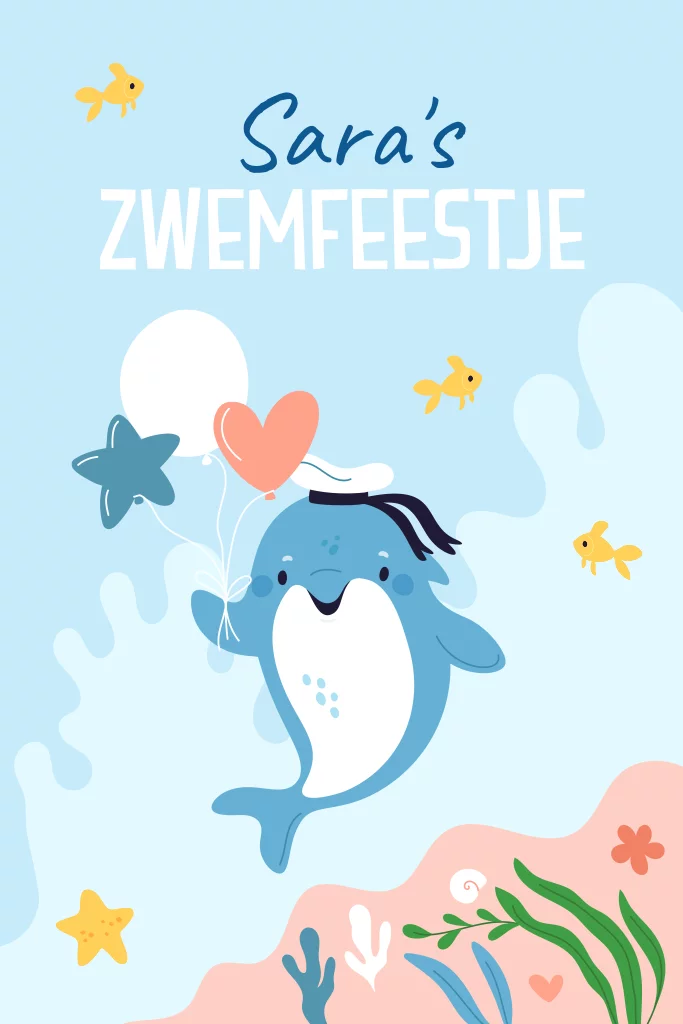 Wat is er leuker dan een verjaardagsfeestje met je vriendjes en vriendinnetjes? Een zwemfeestje natuurlijk! Dit leuke uitnodigingskaartje met dolfijn is perfect voor een kinderverjaardag.