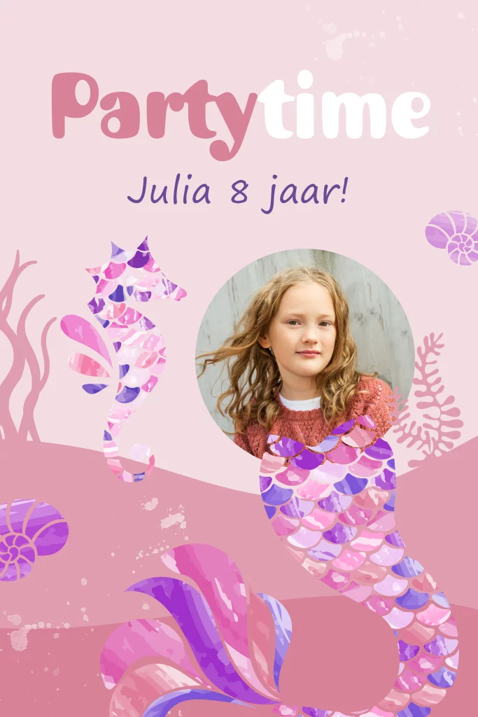 Uitnodiging zwemfeestje met foto en zeemeermin