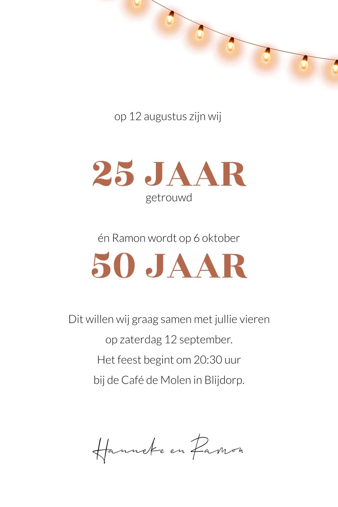 Uitnodiging dubbel feest 25 jaar getrouwd en 50 jaar