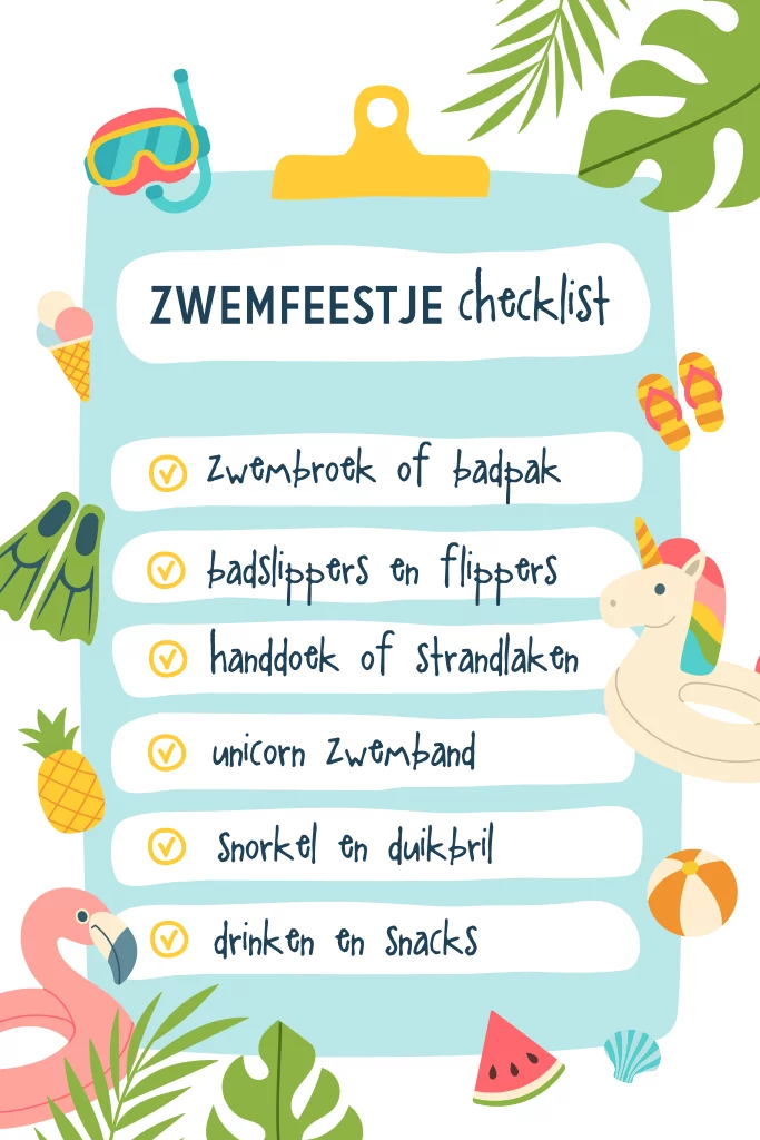 Zwemfeestje uitnodiging checklist kinderfeestje