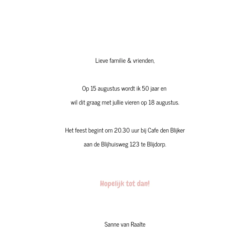 Born in 1975? Let's party, want jij bent hebt Sarah gezien! Nodig alle gasten uit voor jouw feest met deze geweldige vintage kaart. Op deze verjaardag uitnodiging voor 50 jaar staan verschillende lettertypes in wit, zwart en roze met een retro tv. Zet hier je eigen foto in en maak van deze kaart je eigen persoonlijke uitnodiging. De gehele combinatie van kleuren en lettertypes geeft deze kaart een retro uitstraling. Je kunt deze uitnodiging zelf gemakkelijk bewerken, opslaan en bestellen.