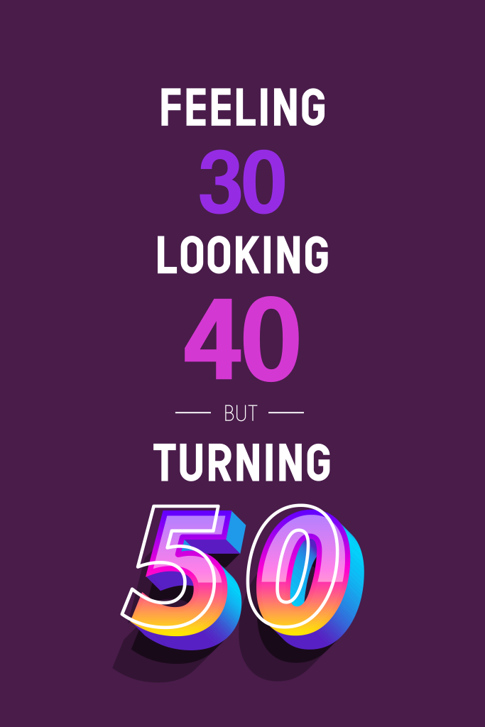 Feeling 30, looking 40 but turning 50? Met dit feestelijke kaartje laat je duidelijk aan je vrienden en familie zien dat je wat te vieren hebt! Deze typografische kaart met verschillende lettertypes, cijfers en kleuren heeft een retro uitstraling. Het cijfer 50 knalt er extra uit door de felle en kleurrijke kleuren.