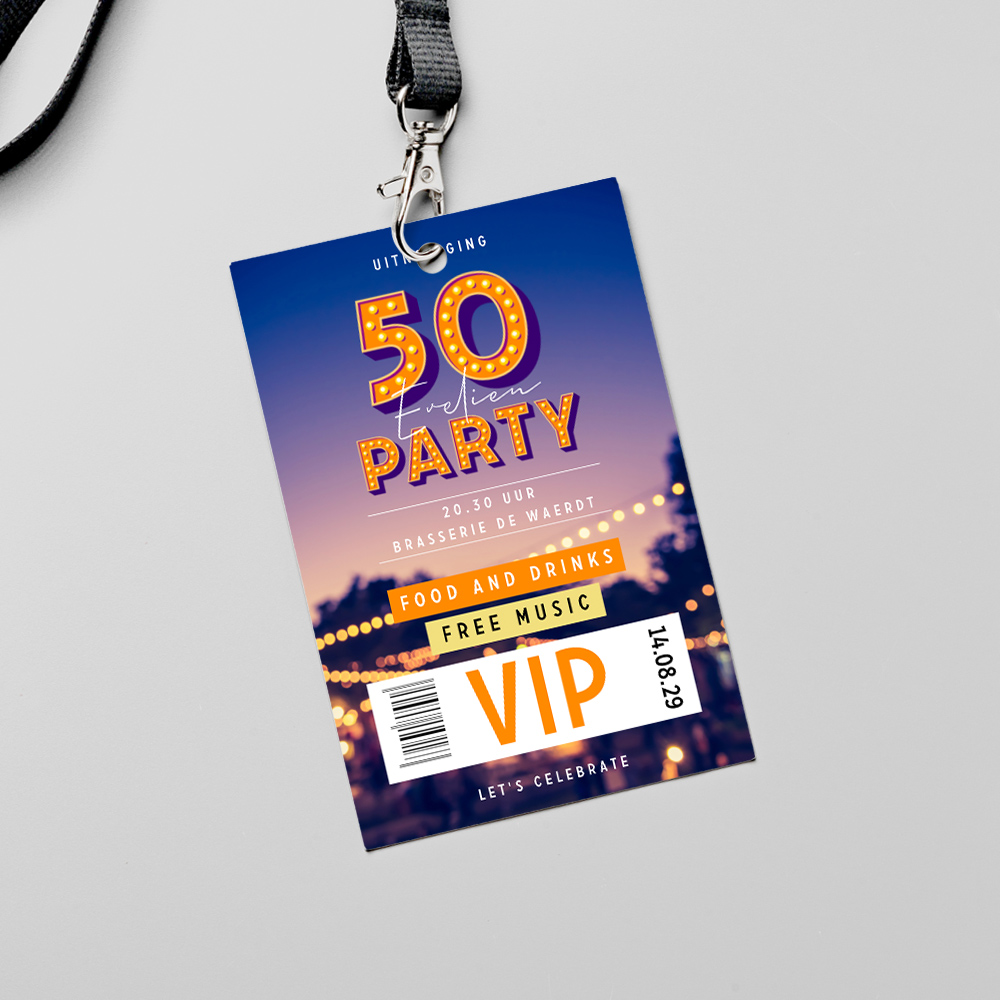 Ticket festival uitnodiging voor een verjaardag 50 jaar