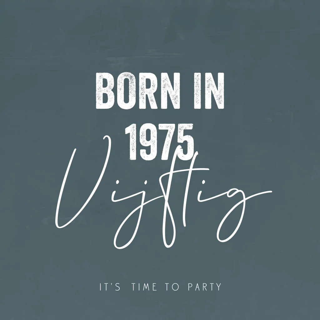 Born in 1975 en geef je een feestje? Kies dan deze moderne uitnodigingskaart met verschillende lettertypes. De gouden foliebedrukking maken de kaart extra feestelijk. Deze kaart is ontworpen voor 50 jaar, maar het is uiteraard mogelijk om de tekst aan te passen naar andere getallen. Daarnaast is de kleur van de foliedruk ook aanpasbaar in onze ontwerpmodule.