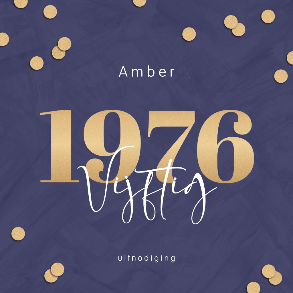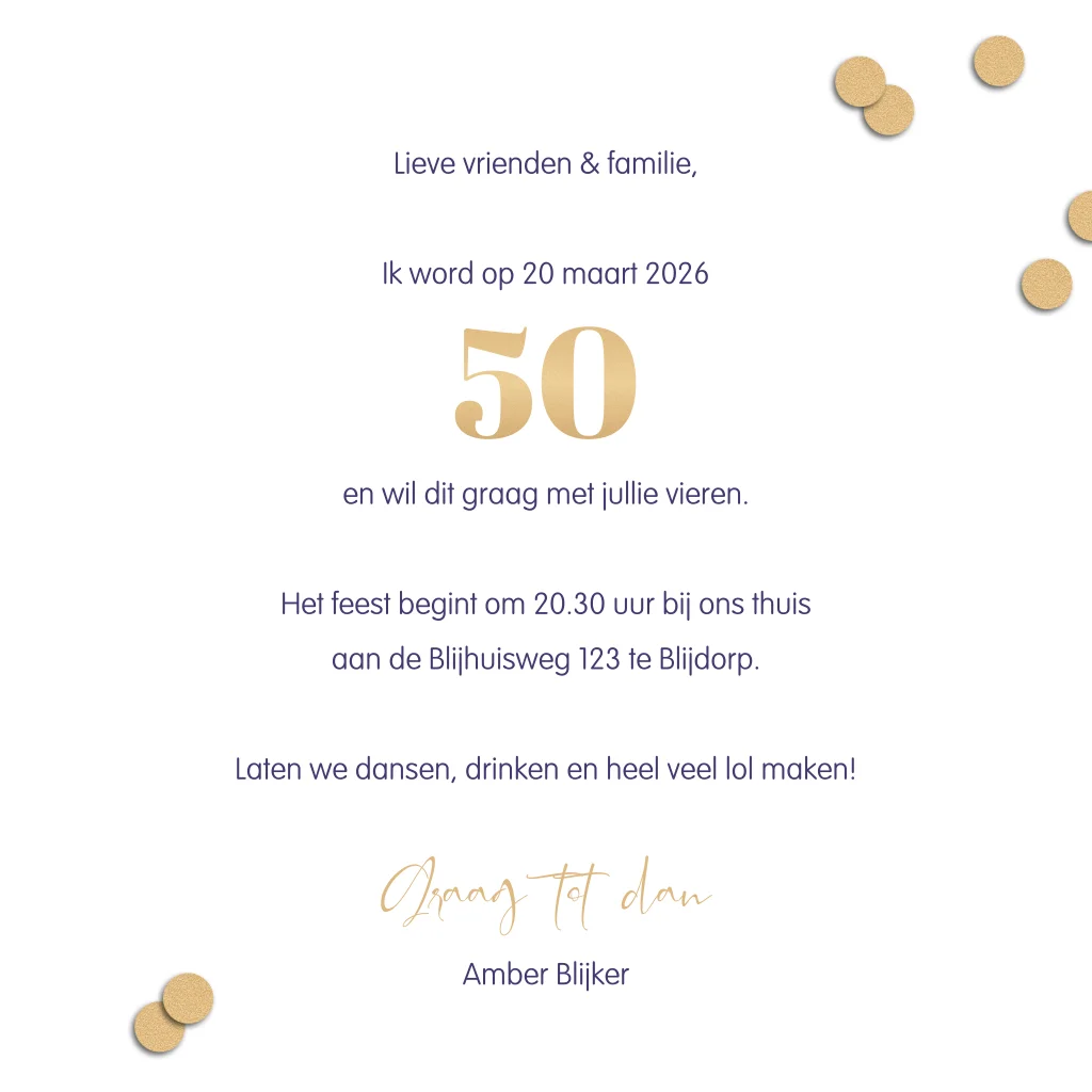 Goudlook 50 jaar uitnodiging verjaardag met confetti
