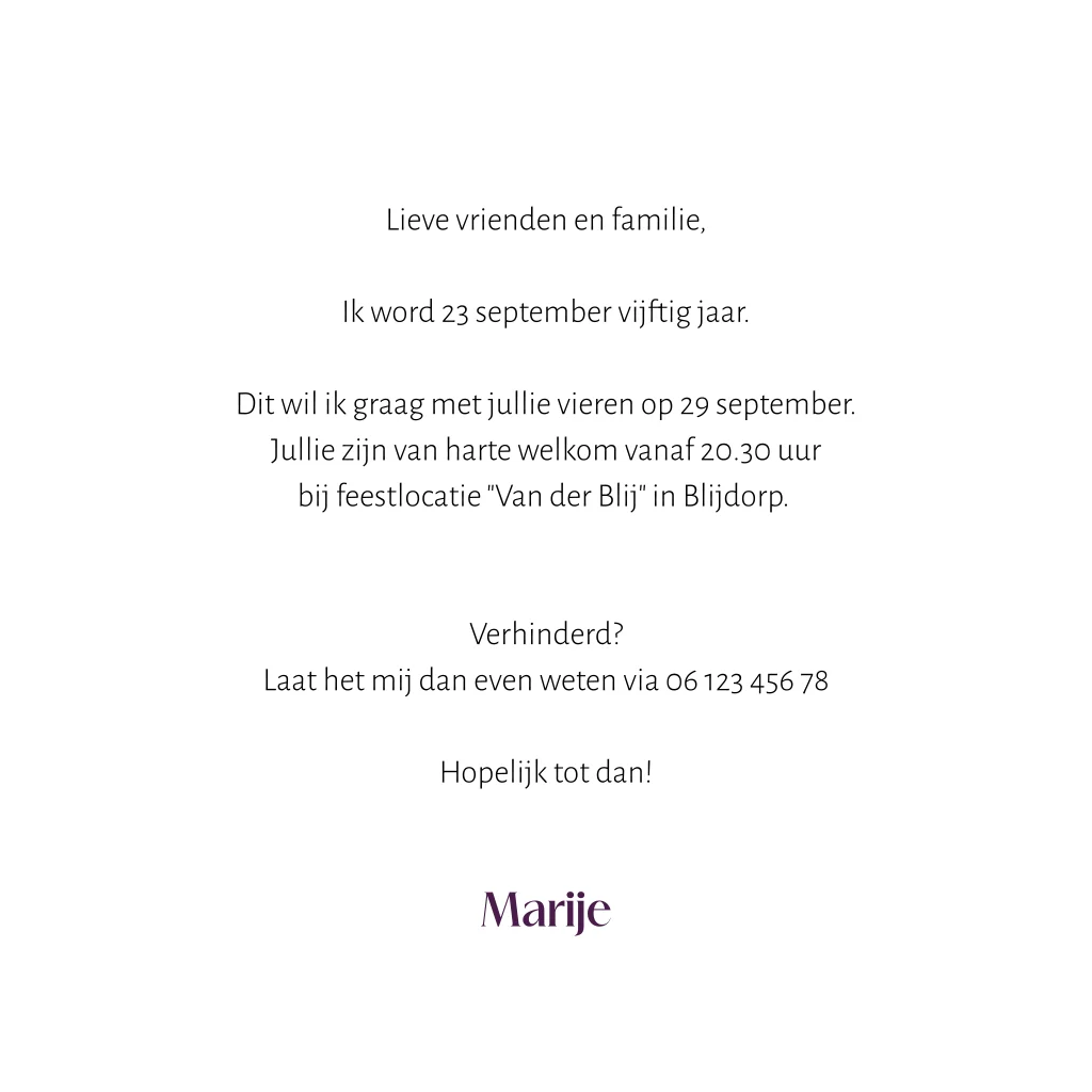 Verjaardag uitnodiging hello fifty met cocktailglas