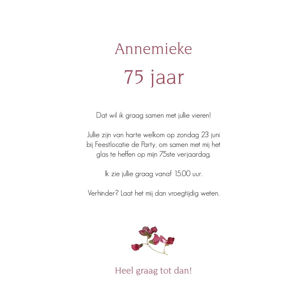 Verjaardagsuitnodiging 75 jaar met foto en bloemen