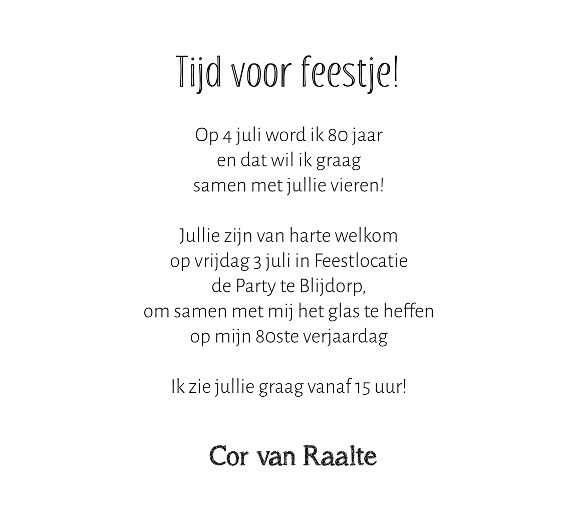 Stoere uitnodiging voor een 80 jarige. Deze verjaardagskaart met eigen foto heeft een houten achtergrond. De pijlen geven een speel effect en staan stoer op het hout. 80 jaar en affiniteit met hout? dan is deze uitnodigingskaart heel geschikt.