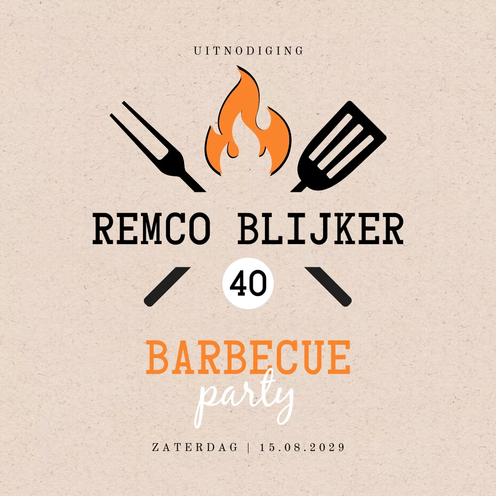 Moderne uitnodiging met ronde hoeken voor een barbecue party. Deze stoere uitnodiging met bbq elementen kun je voor veel gelegenheden gebruiken, bijvoorbeeld wanneer je 40 jaar wordt, maar natuurlijk ook voor een tuinfeest.