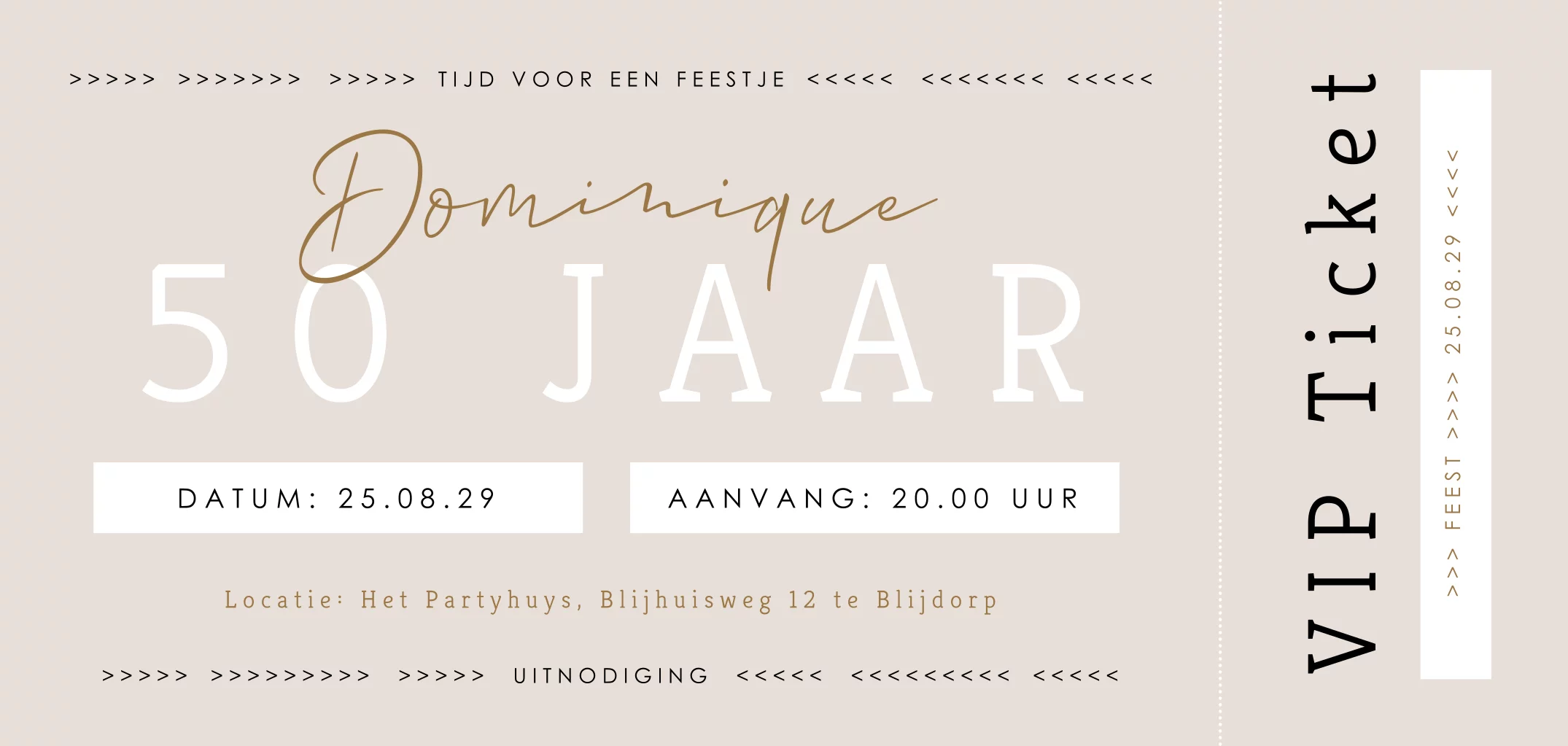 Ticket uitnodiging verjaardag man of vrouw 50 jaar